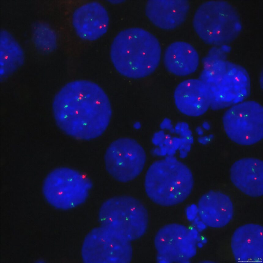 “DNA loops inside cells. It’s what brings two segments of DNA that are far away from each other in two-dimensional space closer together in three-dimensional space. The translocation drags the strong IGH enhancer into a preexisting loop, placing it in a privileged position of control, enabling it to have a widespread impact on dozens of genes at the same time,” explains Dr. Anna Oncins, first author of the study.