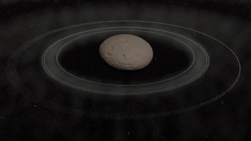 The researchers aren’t certain what caused Chiron’s strange setup. One possibility is that volatile ices beneath its surface erupted in a comet-like outburst, ejecting dust and ice that later settled into orbit. Another is that a small moon shattered, scattering fragments that spread along Chiron’s equator, according to the new study.